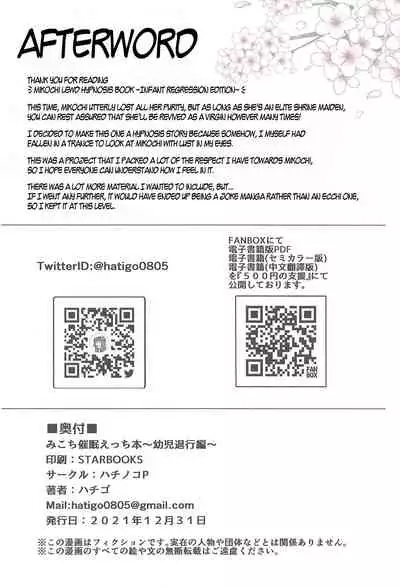 (C99) [Hachinoko P (hatigo)] Mikochi Saimin Ecchi Hon ~Youji Taikou Hen~ | 巫女的催眠小黃書~幼兒退行篇~ (Sakura Miko) [Chinese] [禁漫漢化組]
