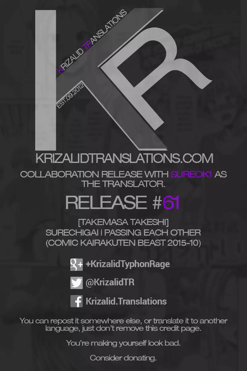 [Takemasa Takeshi] Surechigai | Passing Each Other (COMIC Kairakuten BEAST 2015-10) [English] =sureok1 & Krizalid=