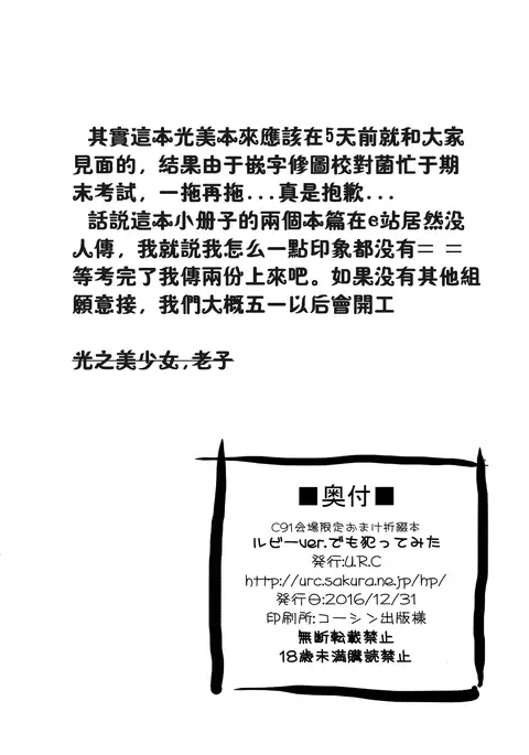 (C91) [U.R.C (Momoya Show-Neko)] C91 Kaijou Gentei Omake Oritojihon Ruby ver. demo Yattemita (Mahou Tsukai PreCure!) [Chinese] [祈花汉化组]