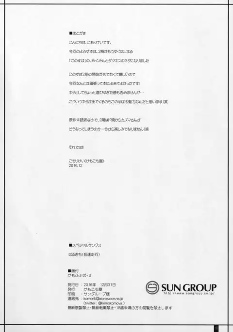 (C91) [Kemokomoya (Komori Kei)] Kemofavor 3 (Kono Subarashii Sekai ni Syukufuku o!)