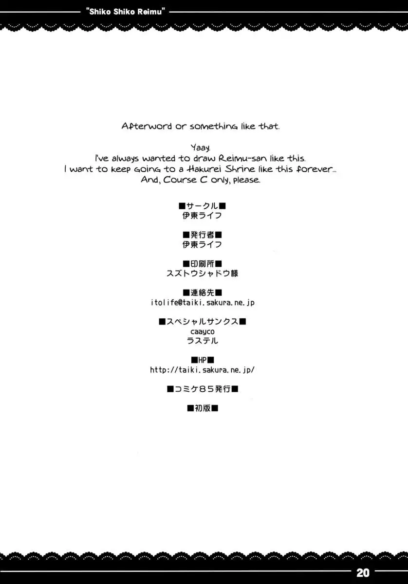 (C85) [Itou Life (Itou Life)] Shikoshiko Reimu (Touhou Project) [English] {pesu}